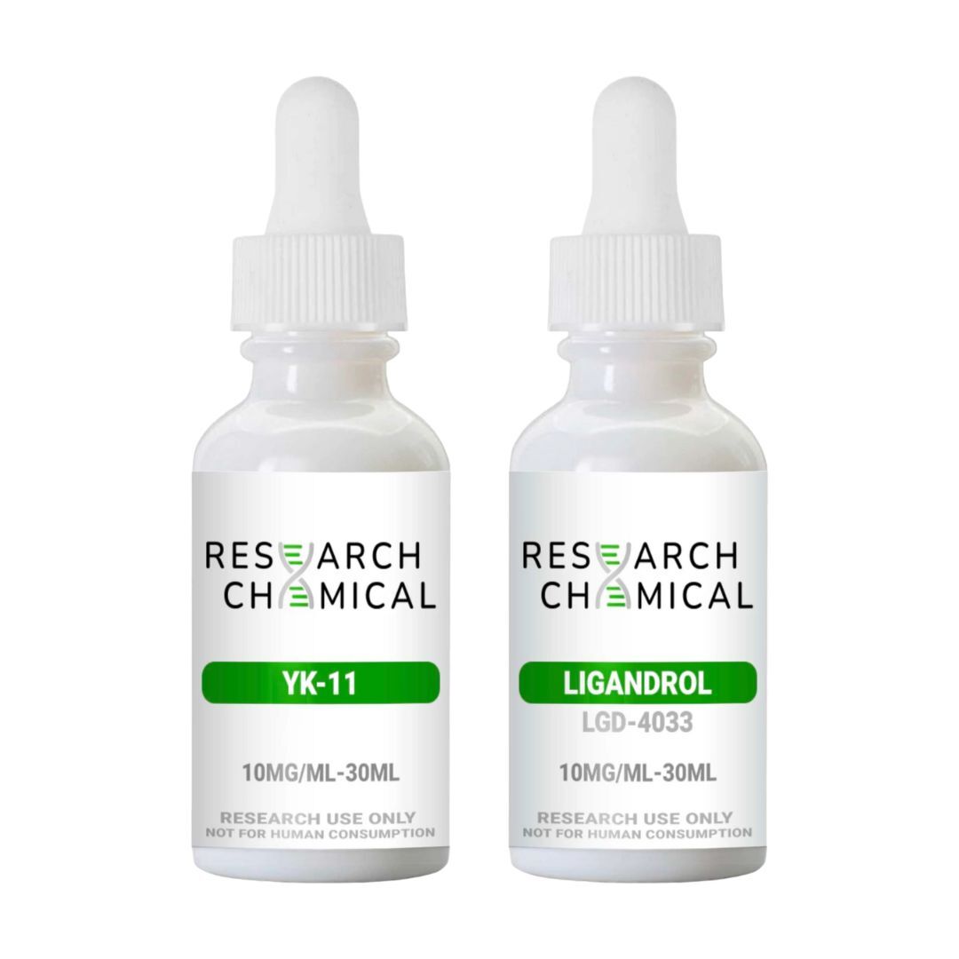 The LGD-4033 (Ligandrol) + YK-11 research stack includes two unique investigational compounds: a selective androgen receptor modulator (SARM) and a myostatin pathway inhibitor.