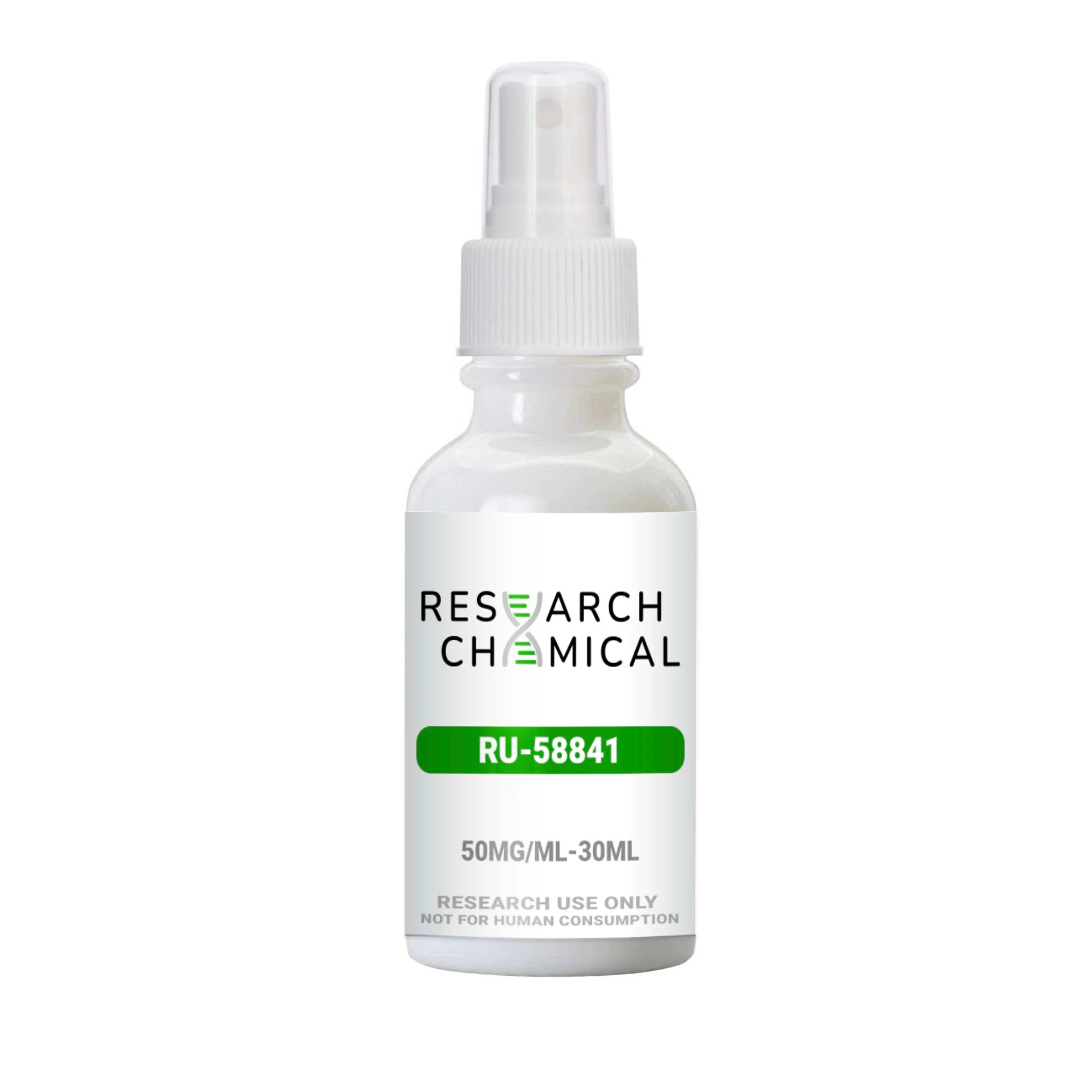 RU-58841 selectively binds to androgen receptors in the skin, blocking the interaction with DHT, the androgen strongly associated with male pattern baldness and sebaceous gland activity. It does not significantly impact systemic testosterone levels or hormonal profiles in topical applications under controlled experimental settings.