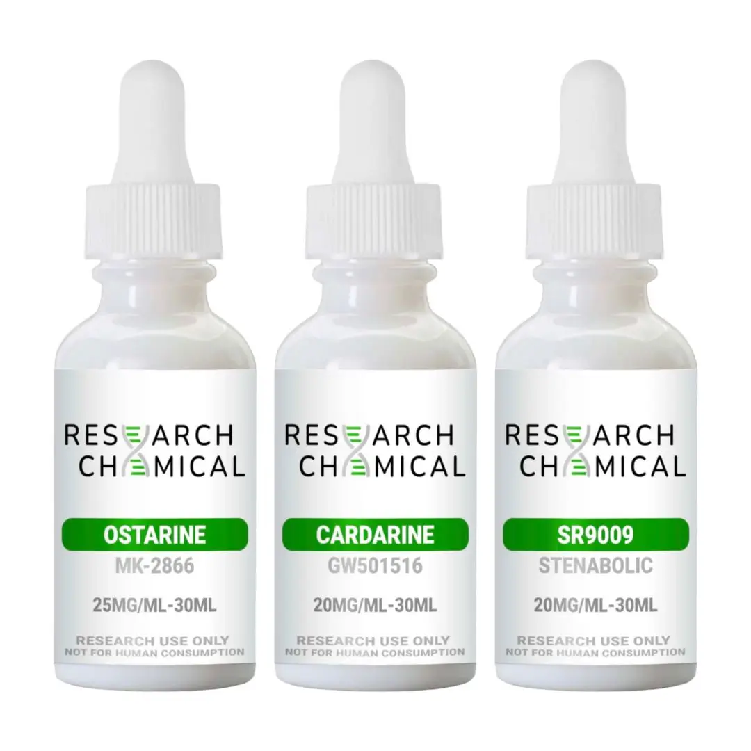 This research stack includes three widely studied compounds: Ostarine (MK-2866), Cardarine (GW-501516), and SR-9009.