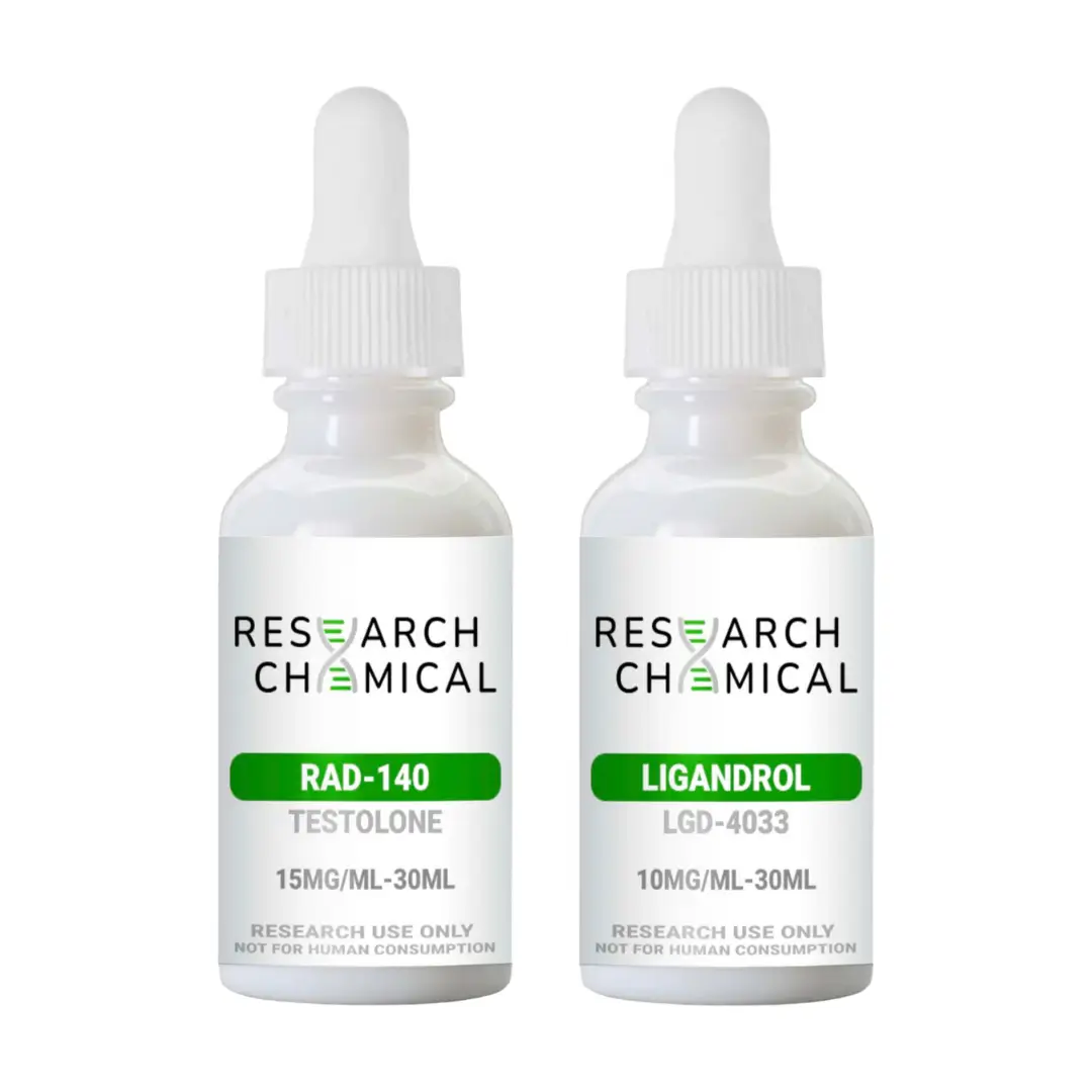This stack is used in preclinical settings to evaluate the combined effects of two selective androgen receptor modulators on muscle and bone tissue. Research is typically conducted in vitro or using non-human models.